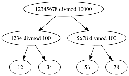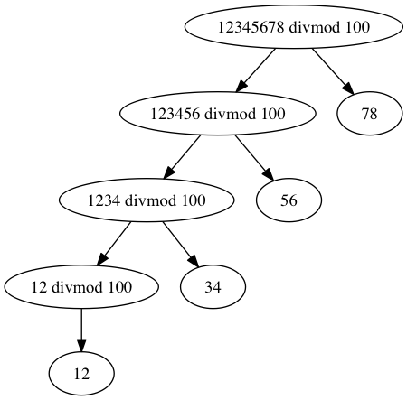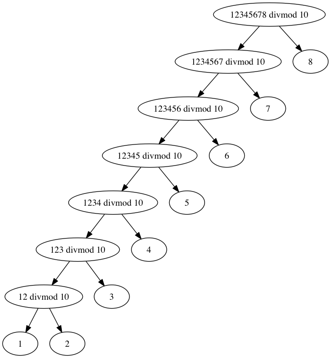 The dependency graph for radix-10 encoding of 12345678 looks like