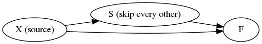 i.e., interleave X with X (\(F\sb{i} = f(X\sb{\lfloor i / 2\rfloor}, X\sb{i})\)).