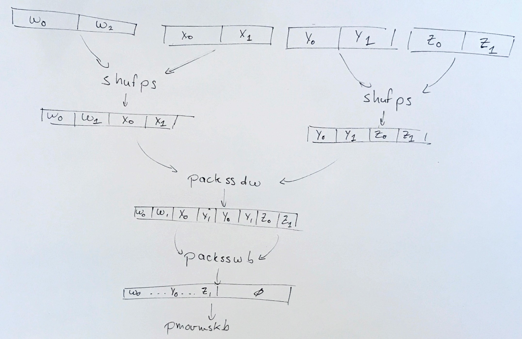 A key component of these operations is a C (SSE intrinsics, really) function that accepts eight 64-bit masks as four 128-bit SSE registers (one pair of masks per register),